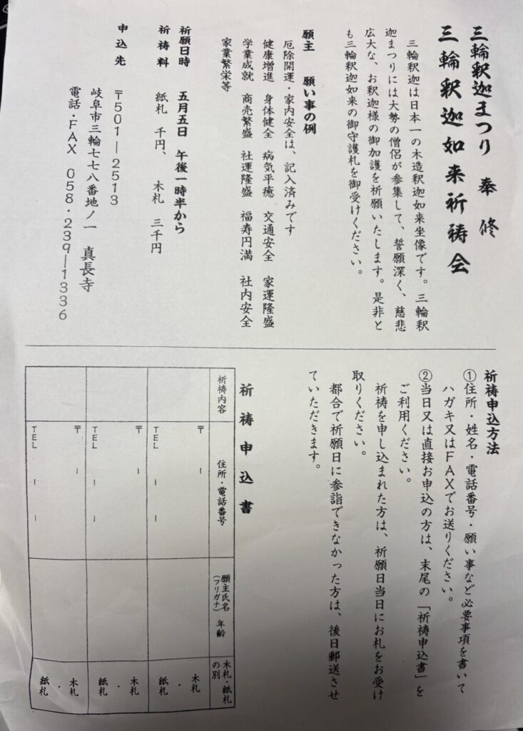三輪釈迦まつりのご案内