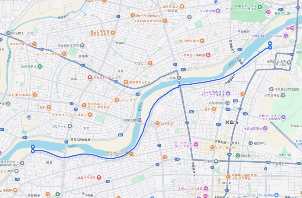 コース:長良川左岸 河川道路(長良橋〜鏡島大橋付近)